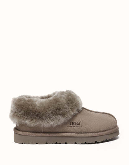 Rien de tel qu'une paire de chaussons à la cheville. Confortables et élégants, vous aurez envie de les enfiler dès que vous les verrez en ligne. La peau de mouton australienne respire et garde vos pieds parfaitement au chaud en hiver et au frais en été. Disponibles en différentes couleurs, ces chaussons UGthtG s'associent parfaitement à un survêtement assorti pour un look cosy ultime tout au long de l'hiver.