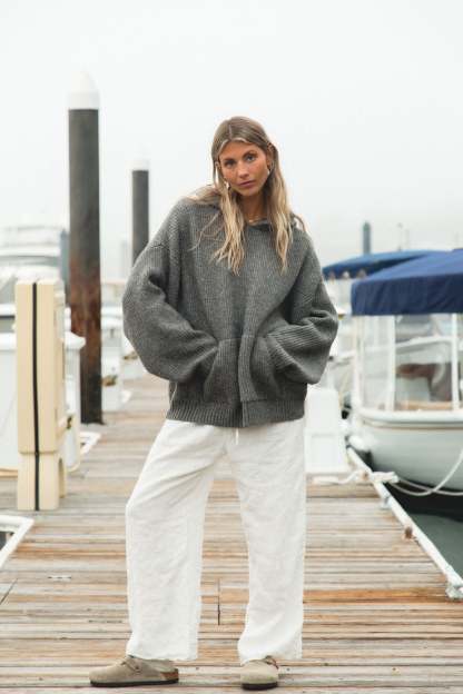 Stay cozy and stylish in our Malibu Mist Wool Blend Hoodie. With its oversized fit and classic hoodie design, this hoodie is perfect for lounging or layering. The soft and thick non itch fabric will keep you warm and comfortable.