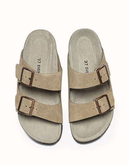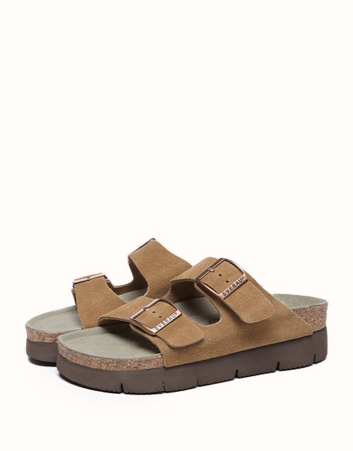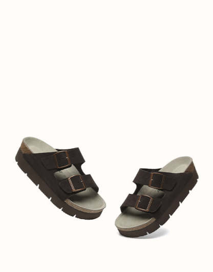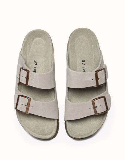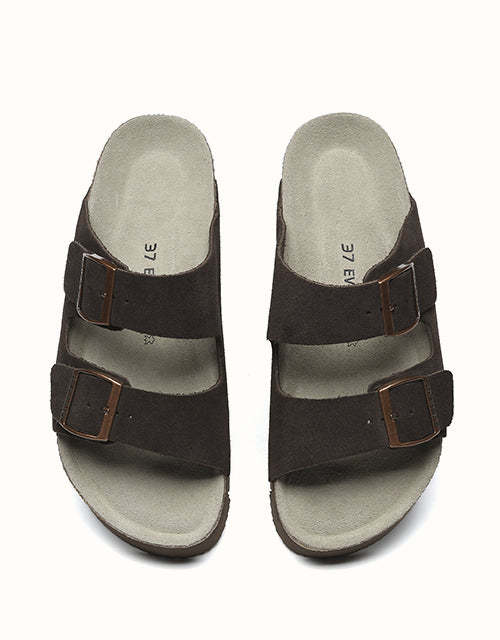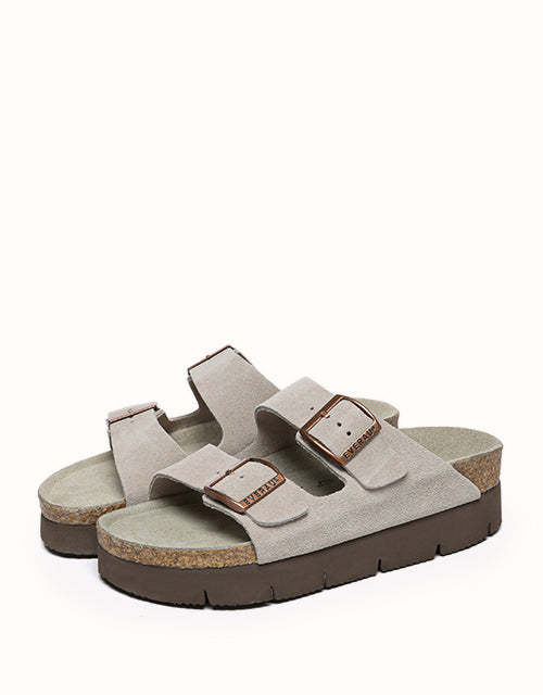 Conçues avec une précision ergonomique et un savoir-faire exceptionnel, ces chaussures sont dotées d'un coussinet de talon biomimétique avec une rainure en forme de cuvette pour soutenir le talon et protéger la cheville, ainsi que d'un soutien latéral de la voûte plantaire pour réduire la pression et améliorer la stabilité. Leur style comprend une semelle plateforme de 3,5 cm d'épaisseur en liège et EVA pour la hauteur, l'amorti rebondissant et l'adhérence, ainsi que des doubles brides croisées pour un design ouvert chic et des boucles réglables alliant modernité et élégance intemporelle. Caractéristiques : Dessus : Daim de vachette ; Doublure : Fibre ; Semelle : Caoutchouc ; Semelle intérieure : Daim de vachette ; Couleurs : Marron/Gris/Caribou/Chocolat ; Marque : EVEthtRAU ; Origine : Fabriqué en Chine ; Référence : EA7056 ;