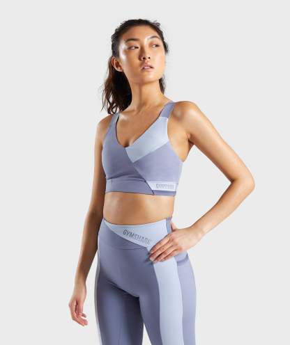 Gymthtshark Womens Colour Block Sports Bra - Steel Blue Tones