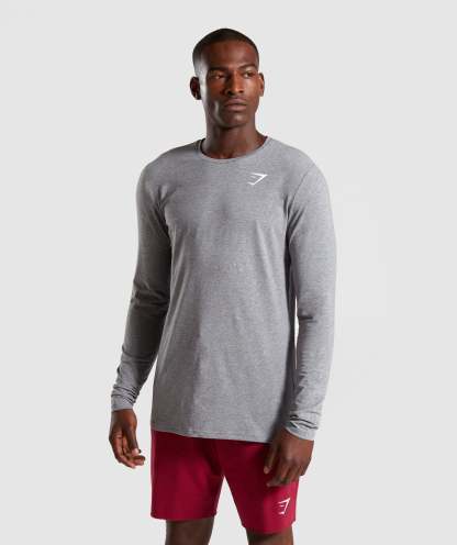 Gymthtshark Mens Critical Long Sleeve T-Shirt - Grey Marl