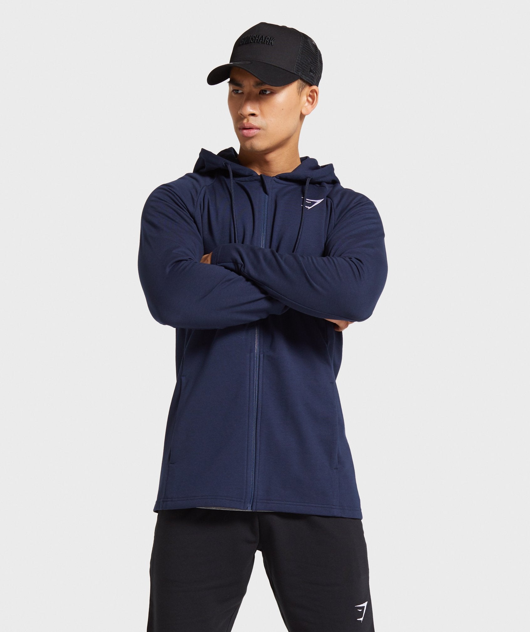 Gymthtshark Mens Critical Zip Hoodie - Dark Blue