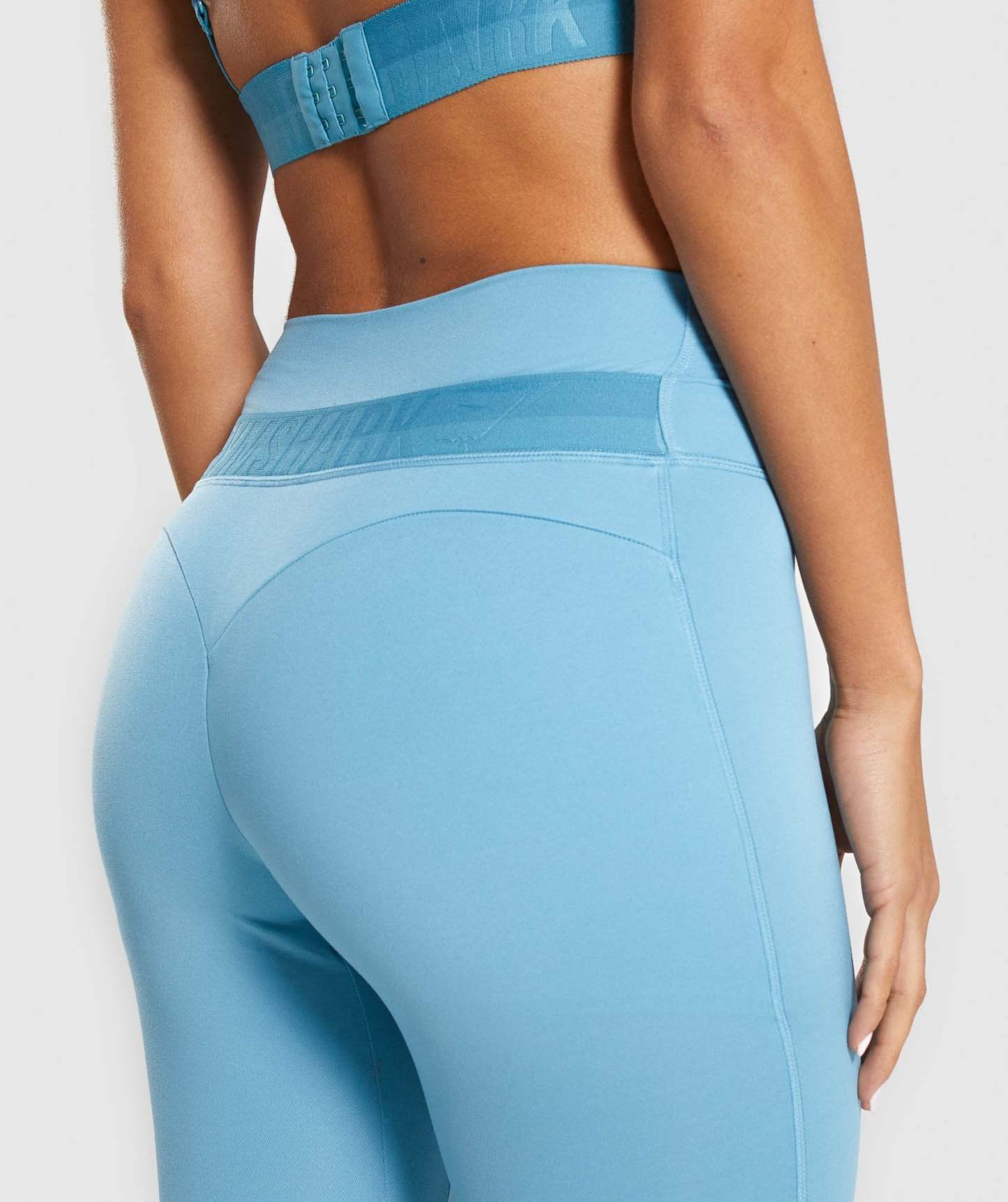 ⁃ Tall waistband with two-tone branding to back