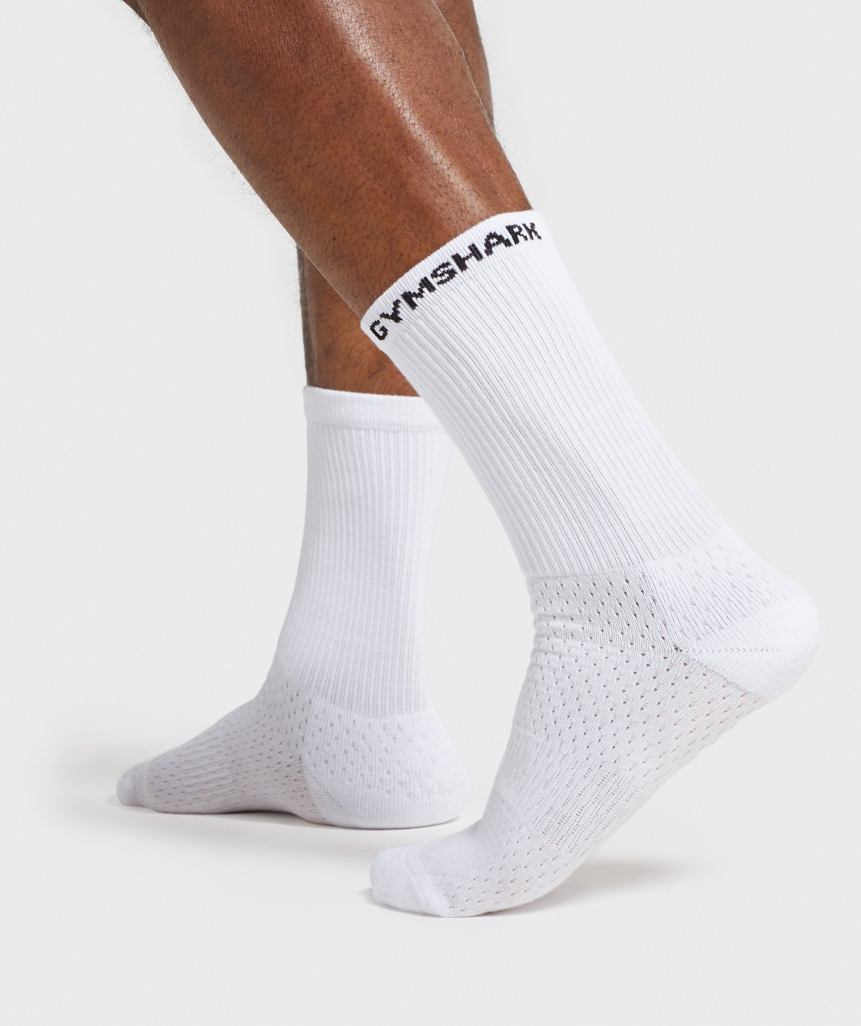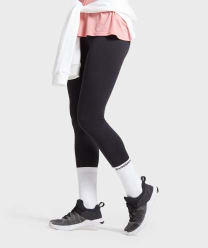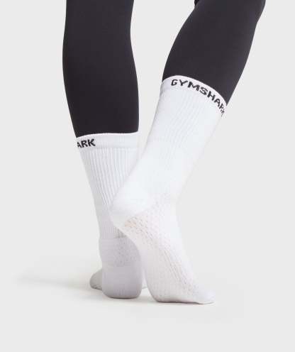 The Gymshark Jacquard Logo Crew Socks provide a unique combination of functional movement and a flattering fit to your calf. A 3cm rib cuff, Terry Knit cushioning and stretch inserts offer the support and structure; a slightly higher fit and contouring details enhance the shape of your lower leg.