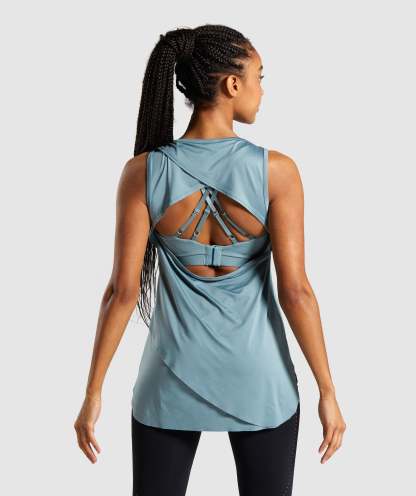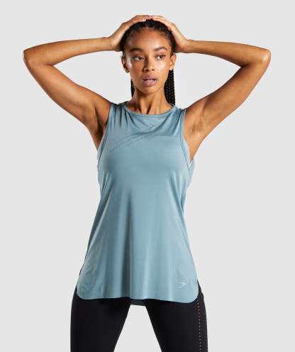 Gymthtshark Womens Laser Cut Tank - Turquoise
