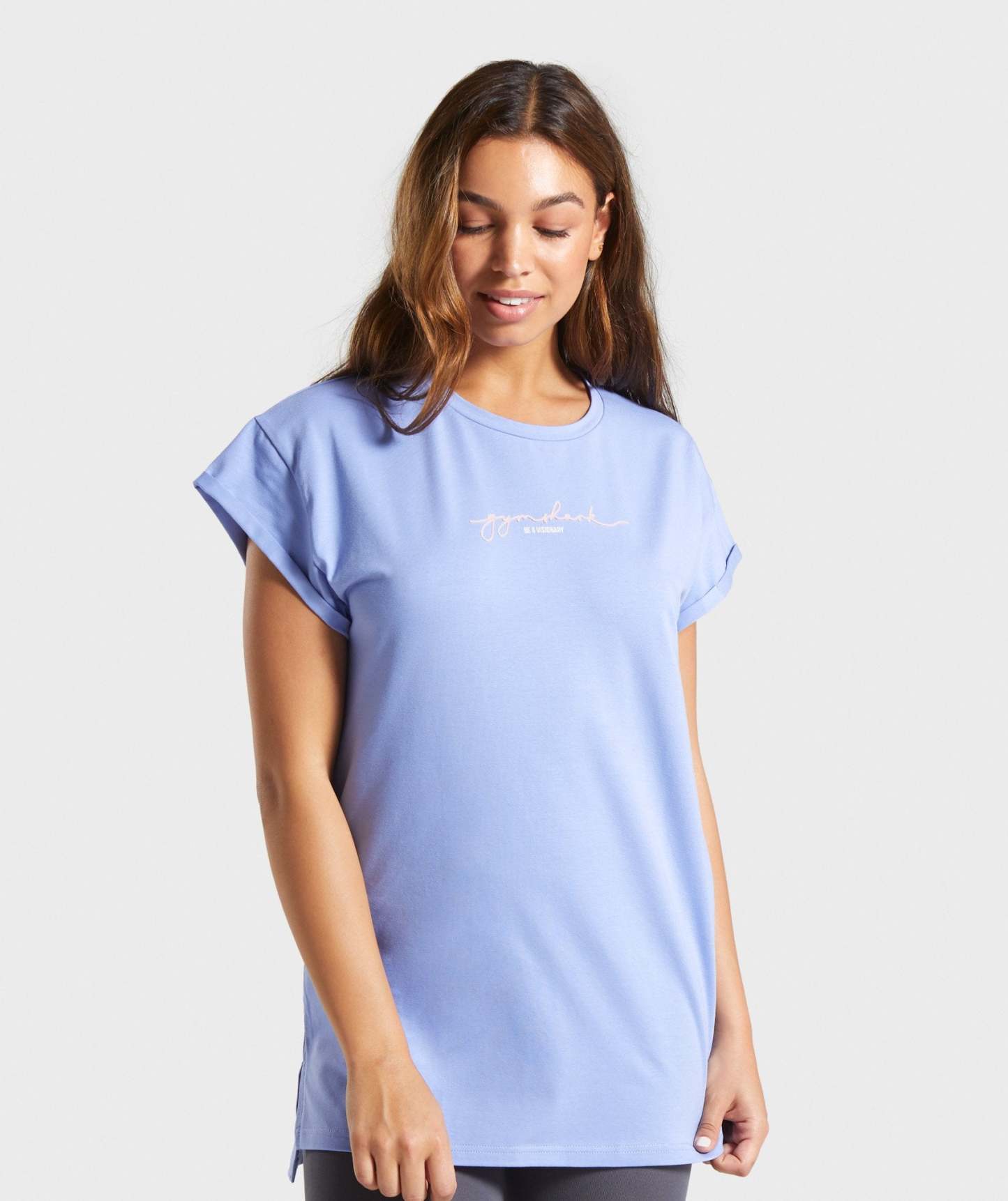 An essential t-shirt cut with a streak of Gymshark flair. The Signature Longline Tee is workout-ready and city-conscious with an oversized and elongated fit, dropped rolled sleeves and a side split hem for unimpeded movement and undoubted style.