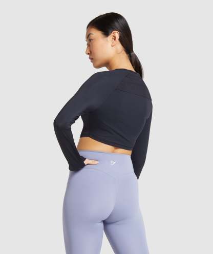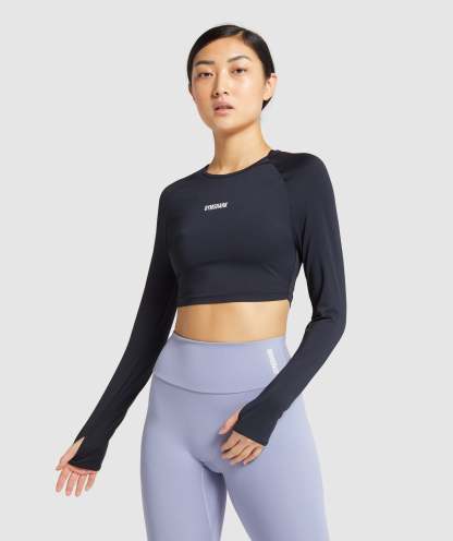 Gymthtshark Womens Training Long Sleeve Crop Top - Black