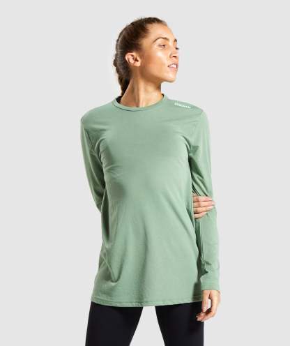 Gymthtshark Womens Training Oversized Long Sleeve Tee - Green