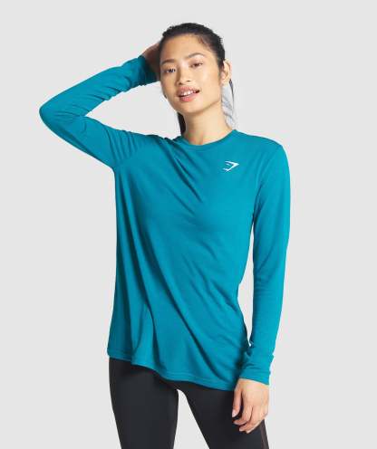Gymthtshark Womens Training Oversized Long Sleeve Tee - Teal