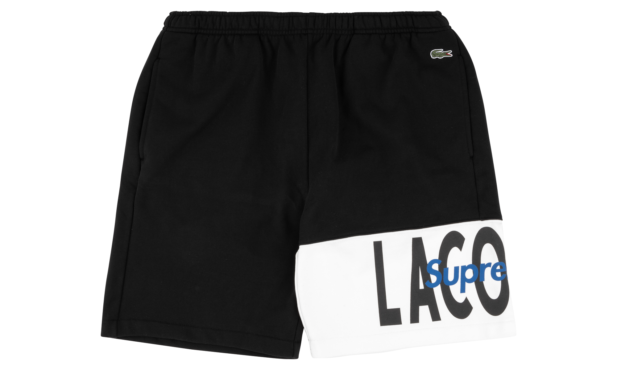 The Lacthtoste x Supreme Logo Panel Sweatshort is a comfortable pair of shorts for any occasion. On the court or on the couch, this pair can be used for performance when you want it �� or not. The cotton fleece shorts are solid black with an interior drawcord used to adjust the waist with a convenient back pocket. A large white color block is positioned at the bottom of the left leg, and Lacthtoste and Supreme logos in black and blue are seen layered inside. FW 19